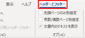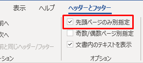 2.「ヘッダーとフッター」で「先頭ページのみ別指定」にチェックを入れます。