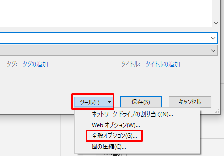 3.ファイル選択のダイアログで、ツール>全般オプションをクリックします。