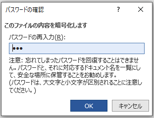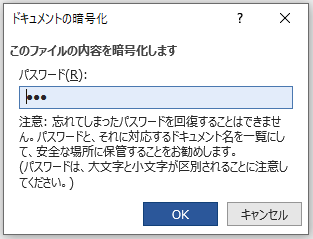 2.「ドキュメントの暗号化」のダイアログが表示されるのでパスワードを入力します。