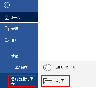 2.ファイル>名前をつけて保存>参照をクリックします。