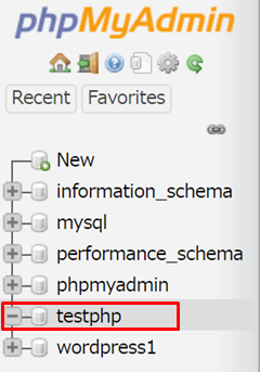 3.phpMyAdminの画面の左側に作成したデーターベースが追加されます。
