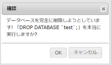3.確認のダイアログが表示されるのでOKを押すとデータベースが削除されます。
