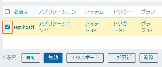 2.無効にするホストにチェックを入れ、無効ボタンをクリックすると無効化されます。