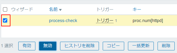 3.無効化するトリガーにチェックを入れ無効ボタンをクリックすると無効になります。