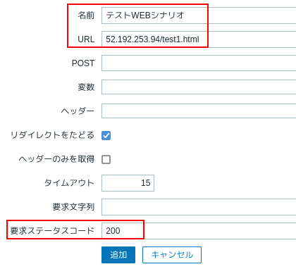 | Webシナリオを作成する(IPアドレスを設定) | |