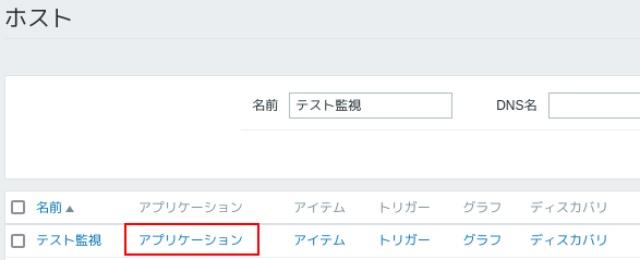 1.ホストの一覧でアプリケーションをクリックします。