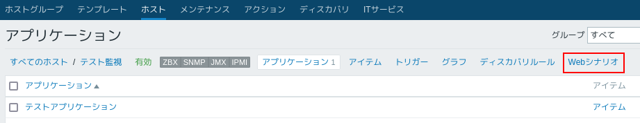 1.アプリケーションの一覧で、Webシナリオをクリックします。