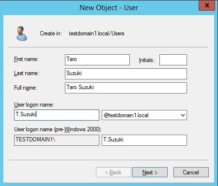 UserPrincipalName : T.Suzuki@testdomain1.local