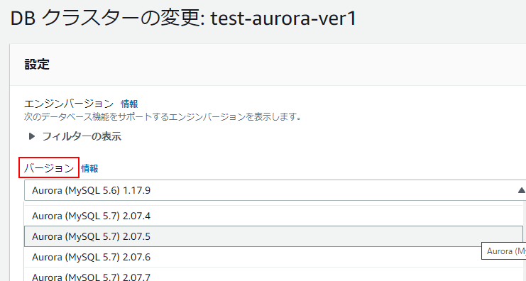 | Aurora(MySQL)のバージョンをアップする | |