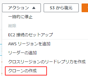 2.「アクション」から「クローンの作成」をクリックします。