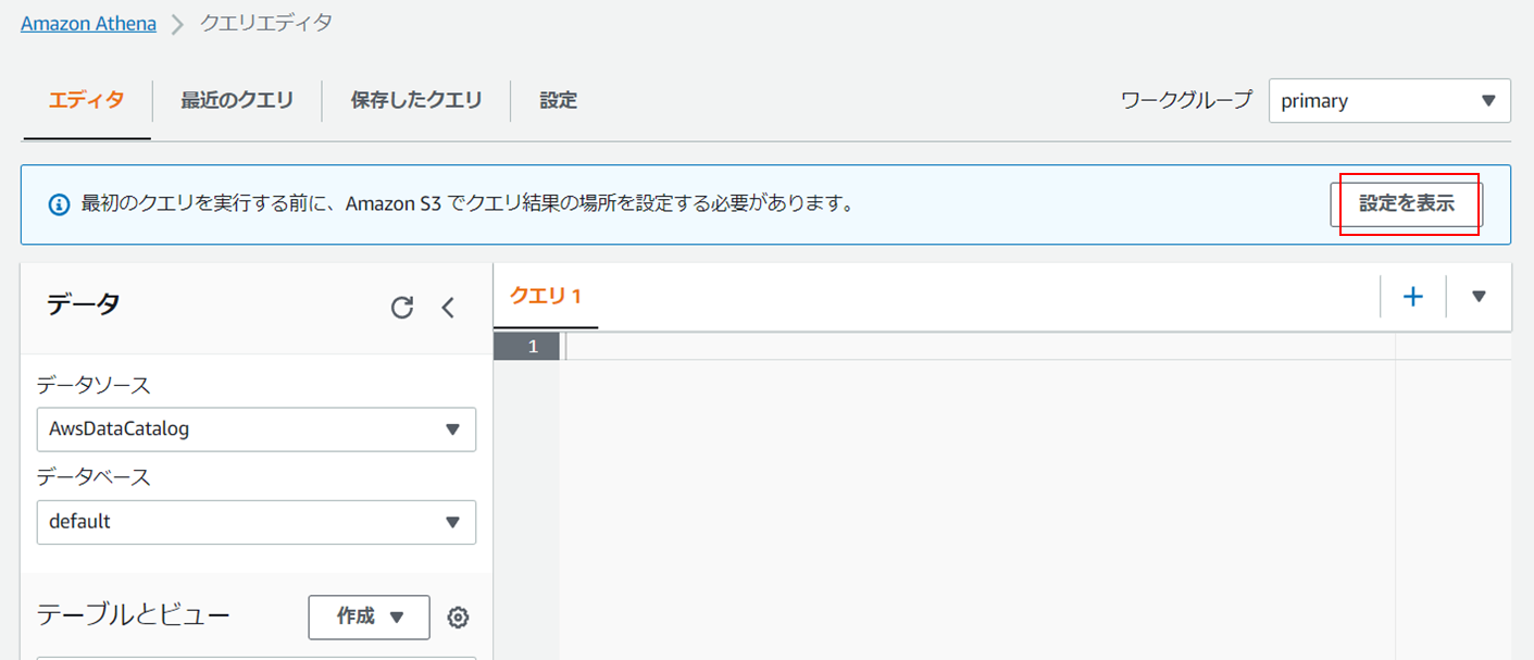 ※最初のクエリを実行する前に、S3でクエリ結果の場所を設定する必要があります。