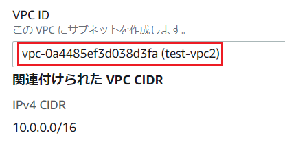 選択すると「IPv4 CIDR」の値が選択したVPCにあわせて表示されます。