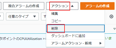 アラーム名を入力し、アラームの作成をクリックすると作成されます。