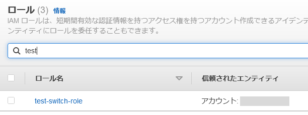 1.ロールの一覧で作成したロールが表示されます。信頼されたエンティティはアカウント1が表示されています。