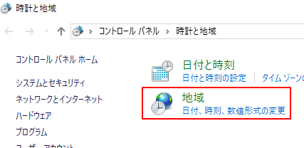 1.「日付、時刻、地域の追加設定」をクリックします。