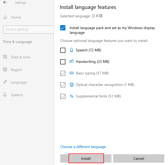 5.optionalは必要なものにチェックを入れ(外し)てInstallをクリックします。