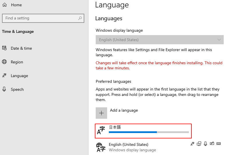英語表示のWindows Server2019を日本語化するサンプルです。