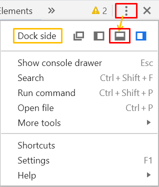 右上の点がある箇所をクリックしてDock sideの選択でデベロッパーツールの表示箇所を変更できます。