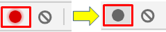 計測中はボタンが「赤」です。丸い箇所のクリックでオンオフを切り替えできます。