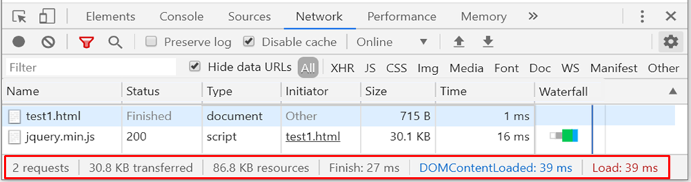 Google Chrome Networkタブの見方(フィルサイズ/表示時間)