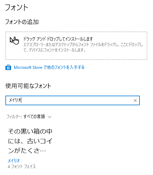 使用可能なフォントを確認できます。ドラッグアンドドロップでフォントのインストールもできます。