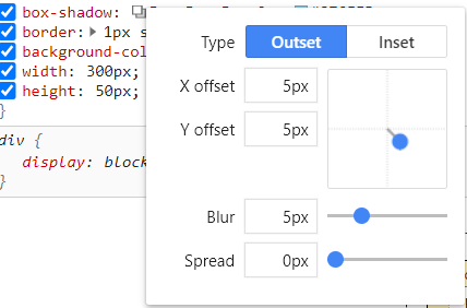 1.デベロッパーツールのElements→Stylesのbox-shadow:の横にあるアイコンをクリックします。