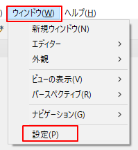 1.ウィンドウ > 設定をクリックします。