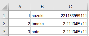 2.エクセルのセルに貼り付けると2.21134E+11になってしまいます。これを数値で表示されるようにします。