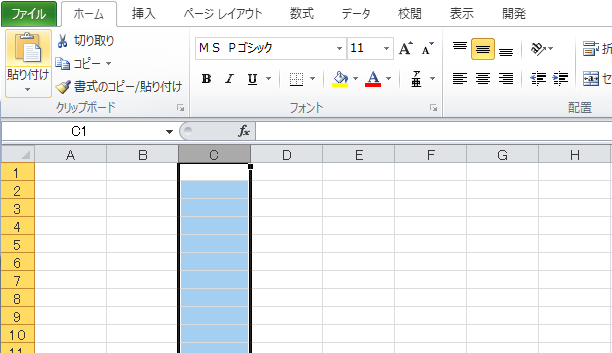 2.分割したい箇所の「列」を選択します。