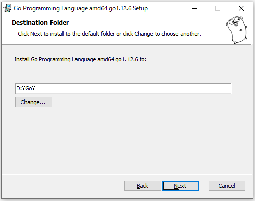 4.Go言語のインストール先を指定します。