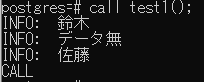 RAISE INFO '%','データ無';