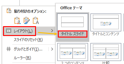 1.ページ上(スライド上)で右クリックし、レイアウトを選択します。