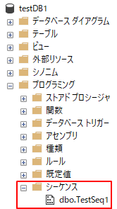 1行目のcreate sequenceでTestSeq1というシーケンスを作成します。