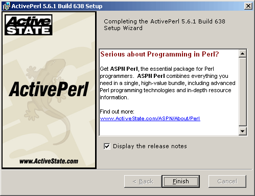 両方のチェックボックスにチェックをつけたまま、「Next>」をクリックしてください。「Add Perl to