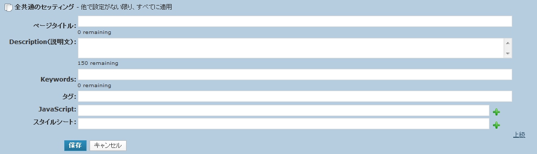 • 全共通のセッティング – 他で設定しない限り、すべてのページに適用。