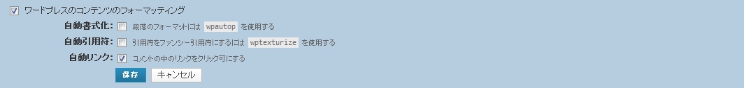 ワードプレスの自動書式化、自動引用符、自動リンクの機能を、有効または無効に設定。