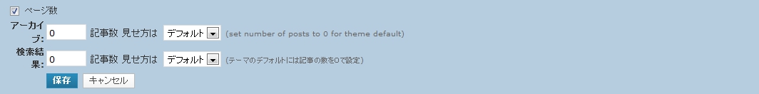 アーカイブと検索結果のページで表示する記事数を指定できる。全文表示か抜粋表示かも選択できる。