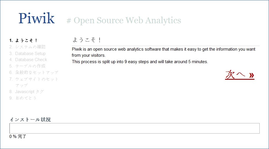 「Piwikは、簡単に、訪問者から必要な情報を取得することができるオープンソースのウェブ解析ソフトウェア。このプロセスは、9つの簡単なステップに分けられ、約5分かかる。」と書いてある。