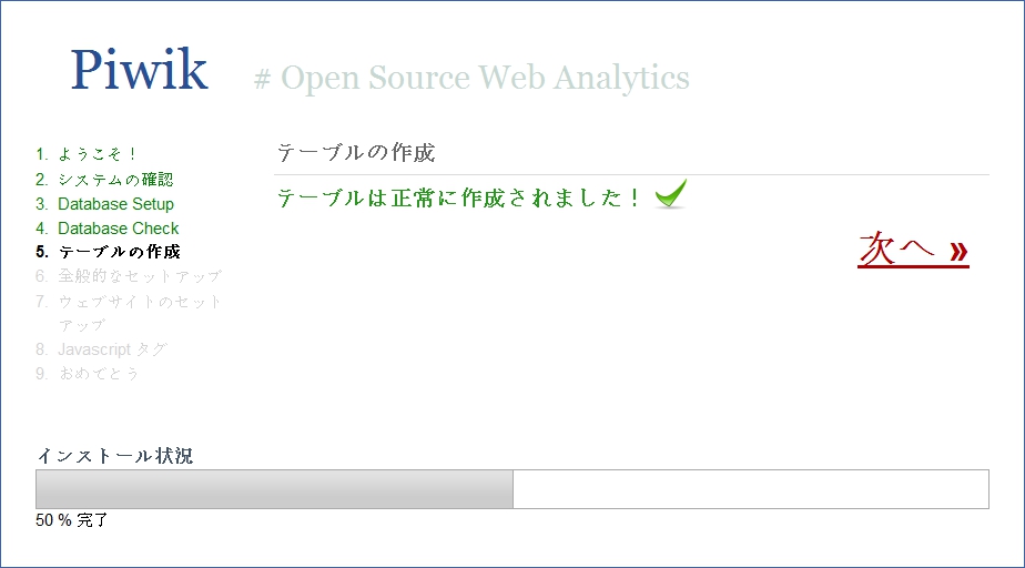 「テーブルは正常に作成されました!」と書いてあれば、「次へ」をクリック。