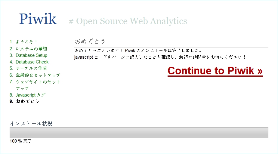 例えば、「http://hoge.tld/」に「piwik」フォルダを設置したなら、「http://hoge.tld/piwik/」へアクセス。