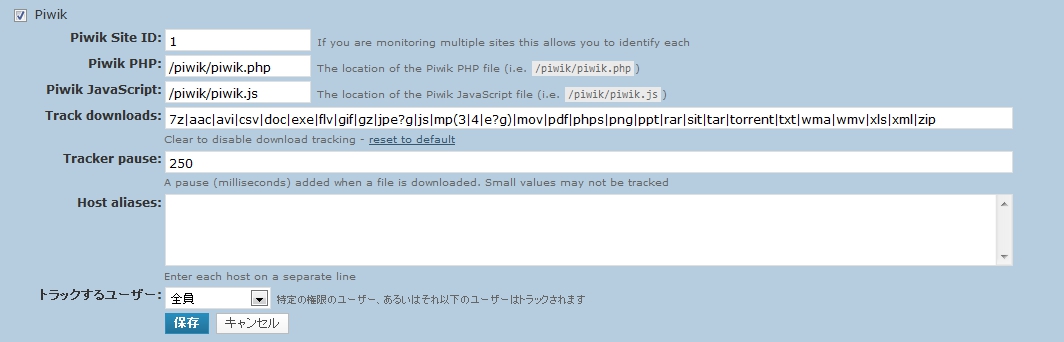 「 Piwik 」を、WordPressウェブサイト直下のpiwikフォルダに入れたのであれば、「/piwik/piwik.php」のままで良い。
