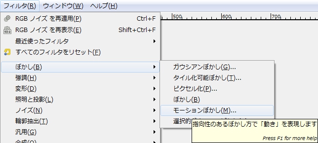 GIMP > フィルタ > ぼかし > モーションぼかし