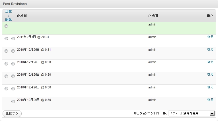 ≫ WordPress – 投稿入力画面 – 「 Post Revision 」ボックス