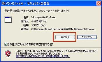 お使いのPCの環境によっては警告メッセージなどが出るかもしれません。私の場合は、ウイルス対策ソフトの警告が出ました。 Inkscapeは世界中にユーザーを持つ有名なソフトなので心配ないと思いますが、万が一トラブル等起こった場合は責任を負いかねますので、予めご了承ください。