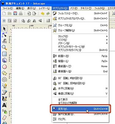 を選択し、[変形]ダイアログボックスを開き・・・