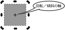 まずは[+]マークを動かさずに回転してみます。すると、四角の中心を軸に回転しました。