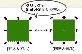 (選択ツール)でオブジェクトをクリックするたびに、周囲の矢印の形が切り替わります。