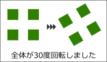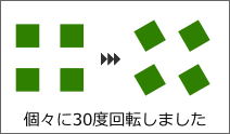 [回転]タブで30度に設定した場合・・・