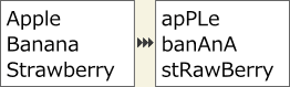メニューバーの[エクステンション]メニューより、[テキスト]-[大文字小文字の入れ替え]を選択すると、テキストの大文字小文字を入れ替えます。
