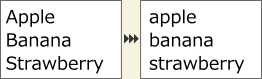 メニューバーの[エクステンション]メニューより、[テキスト]-[小文字化]を選択すると、テキストを全て小文字にします。